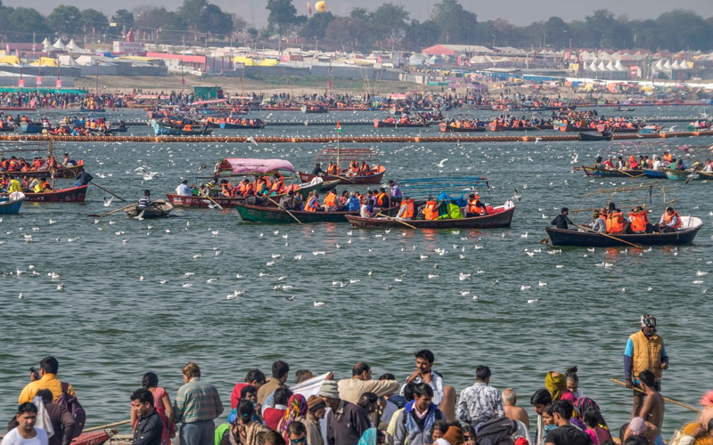 In Hindu tradition, Triveni Sangam is the confluence of three rivers that is a sacred place, with a bath here said to flush away all of one's sins and free one from the cycle of rebirth