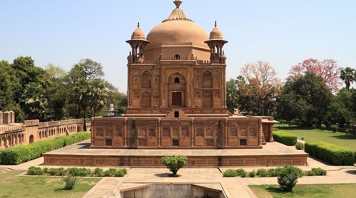 Khusro Bagh is a large walled garden and burial complex located in muhalla Khuldabad, close to the Prayagraj Junction railway station, in Prayagraj, India. It is roughly 6 km from the Akbar fort. It is situated over forty acres and shaped like a quadrangle. It is listed as an Indian Site of National Importance.